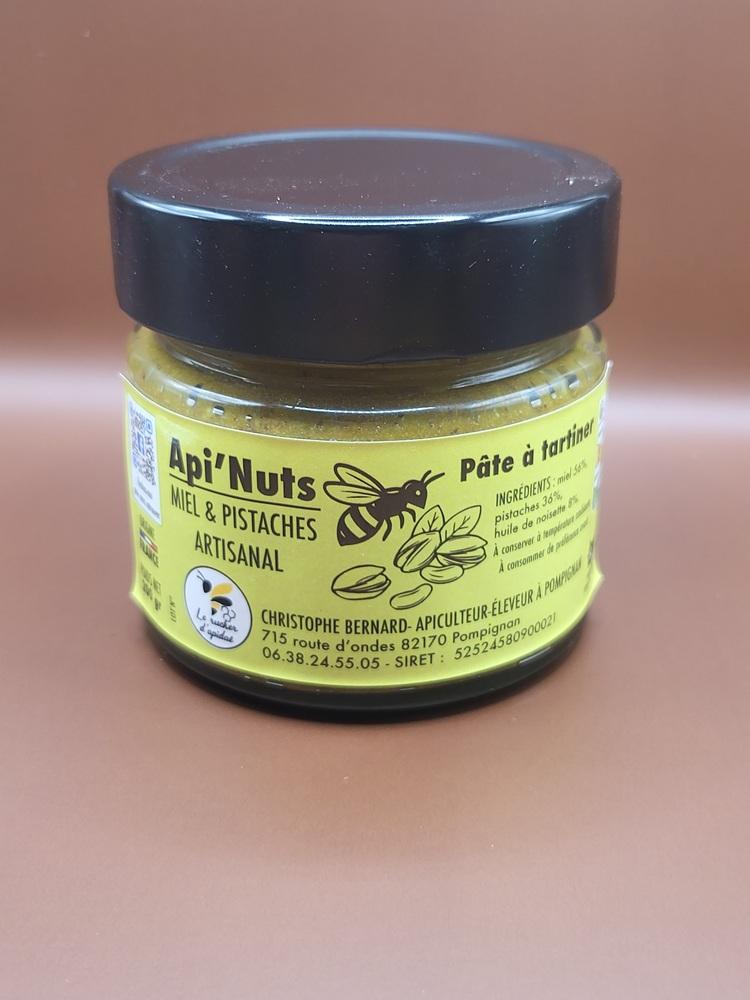Ingrédients : Miel toutes fleurs 56%, pistaches 36%, huile de noisette 8%