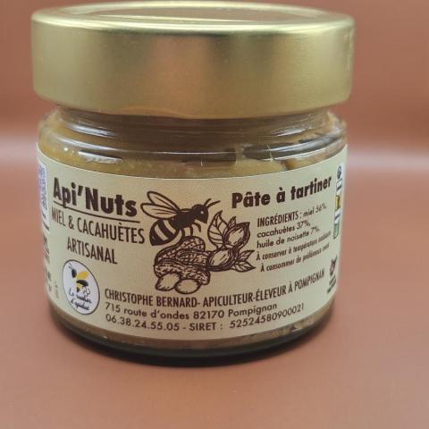 Ingrédients : Miel toutes fleurs 56%, cacahuètes 37%, huile de noisette 7%